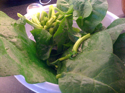 Food Fact: Distantly related to the vegetable spinach is the valche bhajji (in konkani) or Buffalo Spinach in English. Its botanical name is basella alba. This is a fast-growing, soft-stemmed vine with heart-shaped leaves and thick, semi-succulent stems. It is high in vitamin A, vitamin C, iron, and calcium. It is low in calories by volume, and high in protein per calorie. The succulent mucilage is a particularly rich source of soluble fiber, thought to remove mucus and toxins from the body. The plant is also a rich source of chlorophyll.