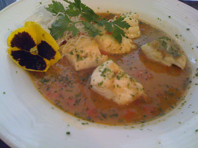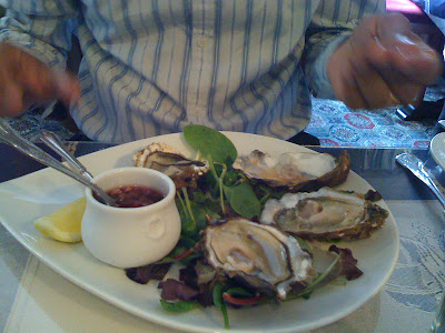 We had a lovely fishy meal of fresh oysters & herring roes for starters, followed by sea bass flambe’d in pernod & monkfish medallions in a spicy lobster bisque for mains, accompanied with a bottle of french rose wine Cote de provence 2006. For dessert we had the intense chocolate parfait.
