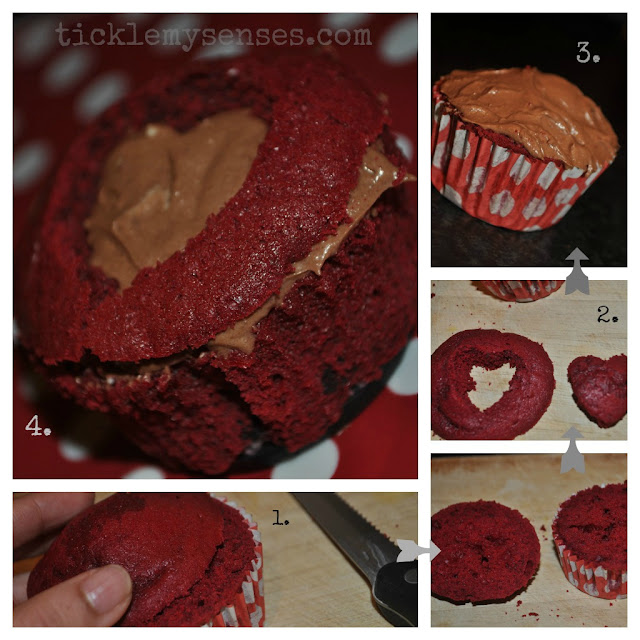Well to celebrate Valentine’s Day ( yes I celebrated early to bring this recipe to you in time for Valentine’s), I baked these delicious Red velvet cupcakes, and must say they are truly magical. The rich deep red colour of ‘love’ in a cupcake, with the ‘not to miss’ ‘divine chocolate’ lusciousness in the Nutella cream cheese topping, and the ‘naughtiness’ of a hidden Oreo……….what more would one want??