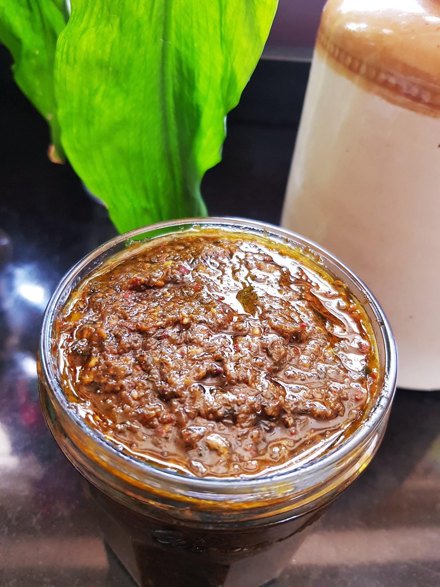 NOTE: When using the pickle only use a clean and dry spoon. Ensure the pickle surface is levelled after use and is covered by oil. The pickle MUST be refrigerated. Should last for upto 3-6 months, though a bottle in ours gets consumed within 2 weeks . When Wild Garlic is out of season you can substitute this recipe with fresh Coriander leaves.