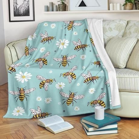 BEE AND WHITE DAISY BEST SELLER FLEECE BLANKET GIFT FOR FAN, PREMIUM COMFY SOFA THROW BLANKET GIFT