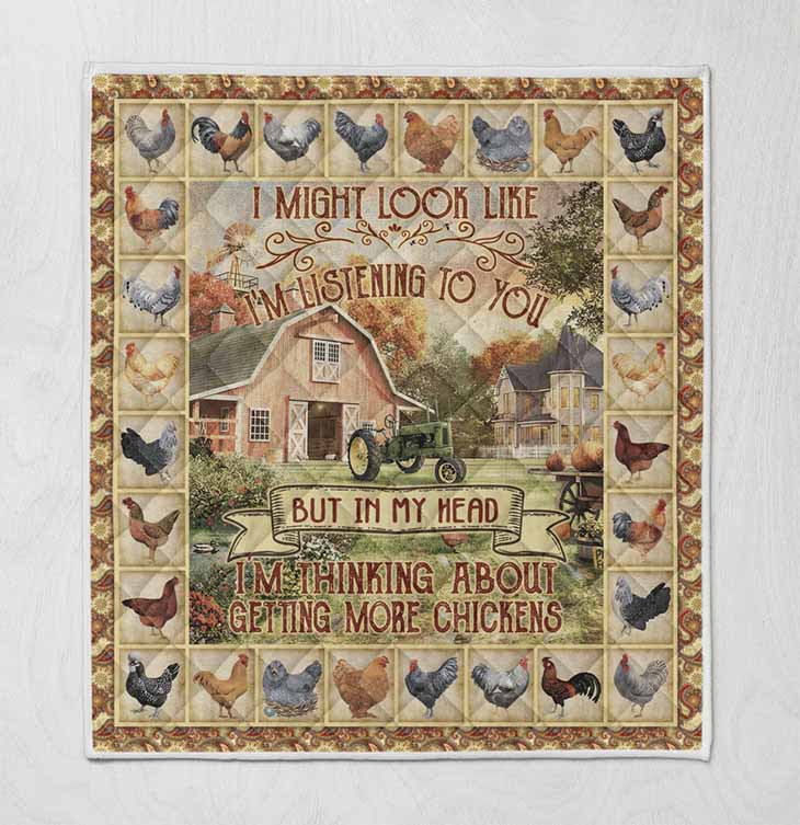 I Might Look Like Im Listening To You But In My Head Im Thinking About Getting More Chickens Quilt Blanket